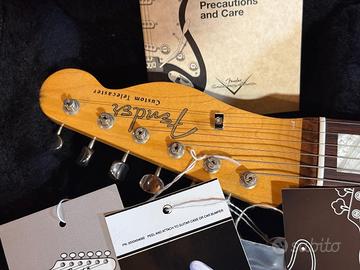 Fender telecaster custom telebration olympic White 2011 - chitarra non facile da trovare in queste condizioni (Su reverb si trovano tra i 2500€ e 2700€) Normali segni d'uso, completa di case originale, tags, accessori e documenti. Da segnalare una piccola sbeccatura sul tacco della chitarra (come da foto) e due segnetti (fatti ritoccare da liutaio) sul binding nero (se non li cerchi non li vedi) , tasti ok, vernice ovviamente leggermente ingiallita dal tempo. Non accetto scambi di nessun genere - Non trattabile. Preferibile scambio a mano, possibile spedizione organizzata dall' acquirente (fornirò dimensioni e peso dell' imballo).