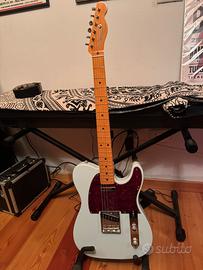 Consegna a mano nonperditempo Scambio con Epiphone Casino Inspired John Lennon Limited Edition * Custom Shop Texas Special Pickups * Sonic Blue Limited Edition Colorway * Tortoiseshell Pickguard Body MaterialTiglioBody FinishGloss PolyesterBody ShapeTelecaster® Neck MaterialMapleNeck FinishGloss UrethaneNeck Shape"U" ShapeScale Length25.5" (64.77 cm)Fingerboard MaterialMapleFingerboard Radius9.5" (241 mm)Number of Frets21Fret SizeVintageNut MaterialBoneNut Width1.615" (41.02 mm)Position InlaysA Punto Nero Bridge PickupCustom Shop Texas Special™ Single-Coil Tele®Neck PickupCustom Shop Texas Special™ Single-Coil Tele®ControlsMaster Volume, Master ToneSwitching3-Position Blade: Position 1. Bridge Pickup, Position 2. Bridge and Neck Pickups, Position 3. Neck PickupConfigurationSS Bridge 3-Saddle Vintage-Style Strings-Through-Body Tele® with Brass Barrel SaddlesHardware FinishChromeTuning MachinesVintage-StylePickguard1-Ply TortoiseshellControl KnobsKnurled DomeNeck Plate4-Bolt