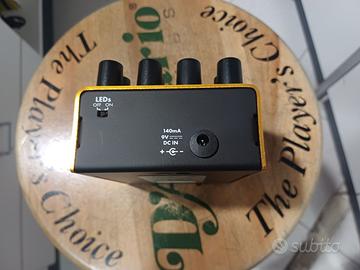 Due circuiti di distorsione indipendenti Circuito crossover per mantenere puliti i bassi True-bypass e interamente analogico Manopole retroilluminate a LED Costruzione leggera in resistente alluminio anodizzato N.B. Alimentatore NON incluso