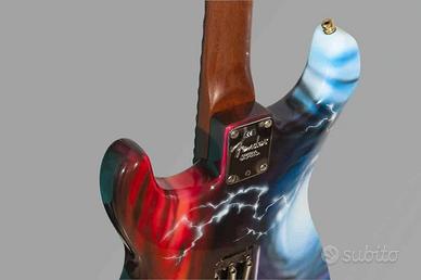 Vendo Fender Americana completamente pitturata a mano e sucessivamente messe 2 mani di trasparente. ( autore Roberto Morelli). Ponte Floyd rose oro originale , pickups seymour duncan. ponte screamin demon middle stk-s10 yjm / fury manico stk-s10 yjm/fury meccaniche gotoh manico scaloppato Appena uscita da liuteria per un setup generale. custodia e tracolla inclusa con attacchi rapidi.