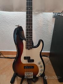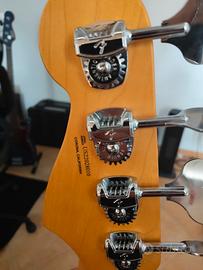 Finitura lucida in ultraburst Collo con Satin-Finish e frontale della paletta con finitura lucida Costruzione Bolt-on con lunghezza della scala di 34 pollici Corpo in ontano con tacco del manico affusolato (piede del manico arrotondato) Manico in acero imbullonato in cinque pezzi Tastiera in palissandro a 21 tasti con intarsi a punti Raggio della tastiera composto da 10" a 14" (da 254 mm a 356 mm) "Profilo del manico "Modern D Un pickup split-coil Fender Ultra Noiseless Vintage Precision Bass in posizione centrale Un pickup Fender Ultra Noiseless Vintage Jazz Bass single coil in posizione ponte EQ attivo a 3 bande con alimentazione a 18 volt Interruttore attivo/passivo e controllo degli alti separato per la modalità passiva Ponte per basso Fender 4-Saddle HiMass Testine Fender "F" Lightweight Vintage Include Fender Elite Custodia sagomata