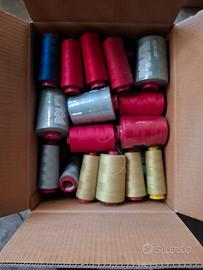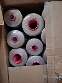 rocche di filo poliestere 120 per tagliacuci da 10000 metri. vari colori . parecchie rocche sigillate, altre iniziate