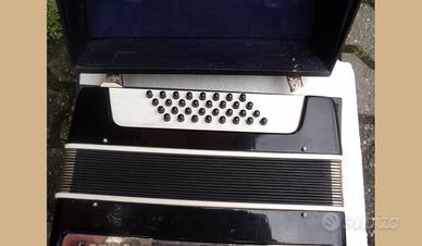 fisarmonica con custodia in legno con 32 bassi manca letichetta della marca ma sicuramente una honner di colore nera e bianca