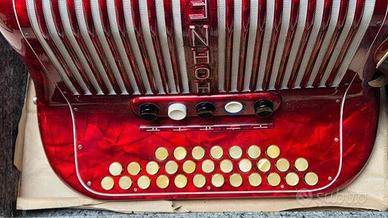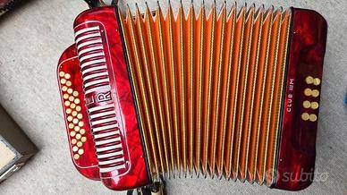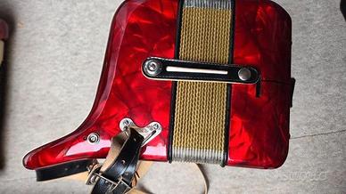 Splendido fisarmonica diadonica rossa a bottoni Hohner in tonalità Do/Fa. Dimensioni dello strumento (33/33/20 cm). Sulla fisarmonica è riportata la scritta “Hohner Club III M”. La cassa è ben salda. La vendo perché non so suonarla. L'ho ereditata da mio padre