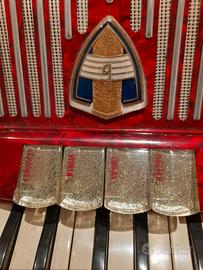 Fisarmonica vintage con finitura “celluloide perlata rossa”, tipica degli anni '50–'60