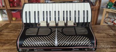 La fisarmonica è una Clemente Serra, prodotta a Valle (PV), un marchio storico. Lo strumento è degli anni 50 a 4 voci in quarta quinta Musette, 41 tasti 120 bassi. Dotata di valigetta per il trasporto. Da revisionare.