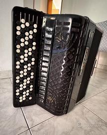 Fisarmonica C-Griff con meccanica dei bassi libera, 106 tasti, 120 bassi, disposizione in terze minori.