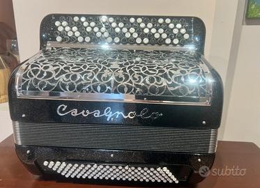 Fisarmonica Cavagnolo cromatica, 55/120, doppio cassotto musette, verniciata con paiettes.