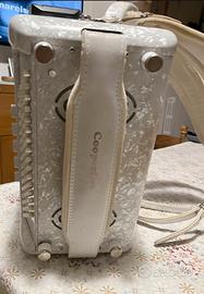 colore: bianco a finitura perlata con particolari in oro… molto elegante