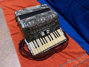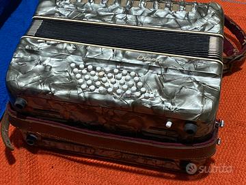 Misure circa 34x35 cm da chiusa. La fisarmonica non è stata usata da molti anni. Funziona, bisogna solo “metterla in funzione”.