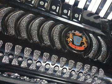 Fisarmonica "DINO BAFFETTI" in eccellenti condizioni, qualunque prova. Specifiche tecniche: Tasti 41, Bassi 120. Voci: 4 al canto, 5 ai bassi. Senza cassotto, tracolle nuove con custodia rigida originale. Registri: 11 con musette al canto, 7 ai bassi, Peso kg 11,5, dimensioni cm 43X 48 X 19, "Made in Italy" (Castelfidardo). Non esiste il nome del modello, semplicemente "Dino Baffetti" ed è equivalente all'attuale serie "Prof. III" (c.f.r. Tabella sito "Dino Baffetti "Accordions". Il prezzo non é trattabile.