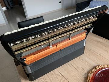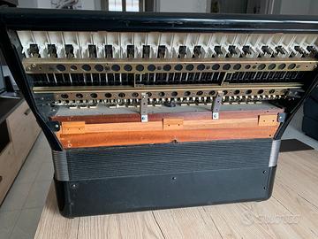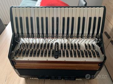 Fisarmonica ex elettronica, svuotata completamente della parte elettrica ormai obsoleta cassa tastiera e meccanica in ordine suono potente e ancora molto bello mantice perfetto da terminare mascherina e schienale tre registri al canto cinque registri ai Bassi, voci perfette e squillanti la vendo per chi ha voglia di terminare il progetto si accettano offerte non ridicole. Grazie