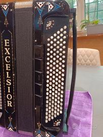 vendo fisarmonica Excelsior 320s in quarta e quinta con ricami e tasti in madreperla 11 registri sulla mano dx con basson e musette e 5 sulla sx invio altre foto e video a richiesta strumento come nuovo usato solo x studio completo di custodia e cinghie da 6 cm 3471620342
