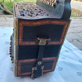 Fisarmonica d'epoca Tomati & Comp in discreto stato di conservazione ma non suonabile, a meno di un restauro. Pezzo d'antiquariato unico.