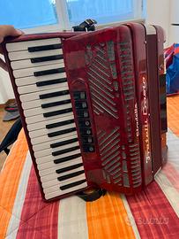 Fisarmonica a Piano 96 Bassi, 37 Tasti, 7+2 Registri, in 3ª e 5ª La Fratelli Crosio 96 bassi è una fisarmonica di alta qualità, pensata per fisarmonicisti di ogni livello che cercano uno strumento affidabile, dal suono pieno e dalla costruzione ben fatta. Dotata di 37 tasti e 96 bassi, offre un’ottima estensione melodica e accompagnamenti ricchi. Dispone di 7 registri + 2 (sistema 3ª/5ª), per una buona versatilità timbrica. La fisarmonica è rifinita in un elegante rosso lucido e viene fornita con tracolle imbottite e una borsa morbida imbottita per il trasporto e la protezione. Ideale per: Studenti avanzati e fisarmonicisti intermedi in cerca di uno strumento affidabile e completo Musicisti da palco o da orchestra che necessitano di un suono ricco e versatile Chi cerca una fisarmonica tradizionale 96 bassi con ampia gamma timbrica Scuole di musica e accademie che desiderano uno strumento robusto per l’uso didattico Appassionati del repertorio folk, classico, popolare o contemporaneo Caratteristiche: Fisarmonica a 37 tasti 96 bassi 3^/5^ 7+2 registri Tracolle e borsa imbottite inclusi Colore rosso Borsa Imbottita, tracolle inclusi Usata POCHISSIMO, per mancanza di tempo.