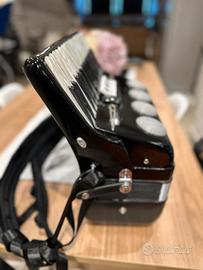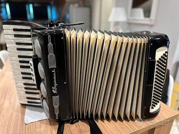 Vendo fisarmonica G.Soprani, 80 bassi, 3 registri alla voce e 2 ai bassi. Strumento restaurato completamente (nel video viene mostrato come comprato a suo tempo dal maestro che lo suona. Sostituite tutte le parti usurate (cinte, fermi mantice), sostituiti tutti i ventilli e rifatte le sigillature ai somieri, dove necessario. Lo strumento risulta quindi perfettamente funzionante ed intonato. Preferibilmente scambio a mano, così da poterlo provare e rendersi conto di persona di cosa si sta comprando. Chiedo 600 euro non trattabili (spesi solo per i ventilli, cinte e cera oltre 250 euro di ricambi). Possibile consegna a mano a mio carico nelle aree di Napoli/Bari/Foggia., lo strumento si trova a Lavello (Pz), 85024.