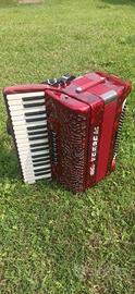 Vendesi stupenda fisarmonica artigianale G. Verde color rosso marmorizzato, 96 bassi, suono pieno e inconfondibile. Completamente revisionata. Completa di borsa e tracolla.