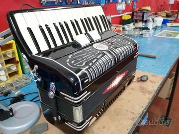 vendo fisarmonica della ditta di castelfidardo , bellissima nera con suono potente ed eccezionale 80 bassi 7+2 3e5. rifatte voci e valvole al canto uguale ai bassi per tenerla perfettamente quindi nuovissima per il prezzo di €900. fasciani ezio molina aterno aquila tel. 3407985311.