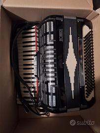 Lo strumento è un modello classico con tastiera a pianoforte e 120 bassi.