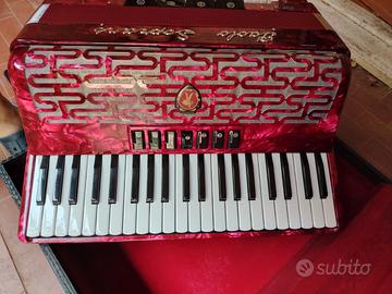 Stupenda fisarmonica Paolo Soprani Studio 120, rossa, Castelfidardo. MANO DESTRA: Tasti: 41; Voci: 3; Registri: 7 MANO SINISTRA: Bassi: 120; Voci: 5; Registri: 4 Dimensioni: 48,5x19x39; Peso: 10,8 Kg; Tipo Voci: S – Duralluminio
