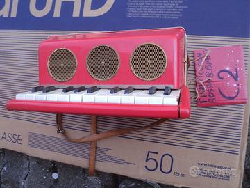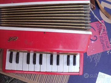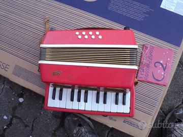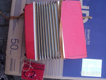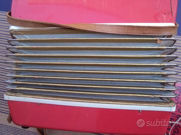 piccola fisarmonicadi colore rossa con 8 bassi con lettere di riferimento C2