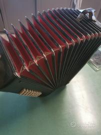 Fisarmonica anni 50 di piccole dimemsioni ma professionale tutta originale, le cinghie che ho sono di cuoio ma sono eventualmente da rifare.