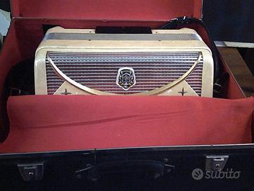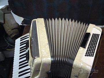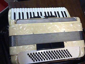 OTTIMA FISARMONICA SETTIMIO SOPRANI, IN MADREPERLA, MANTICE E CINGHIE COME NUOVI, IN OTTIMO STATO, ACCORDATA, QUALSIASI PROVA,PREFERIBILE IL RITIRO MA A RICHIESTA SPEDISCO, COMPLETA DELLA SUA ELEGANTE VALIGIA ORIGINALE