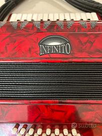Il nome Infinito ricorda il territorio dell'azienda, le marche, che vanta di una lunga tradizione e che ha reso la fisarmonica famosa in tutto il mondo. Progettata da un team italiano la fisarmonica Infinito sposta verso l'alto l'asticella di strumento entry level con un rapporto qualità prezzo senza pari.