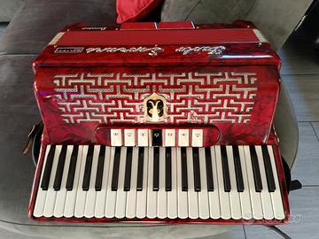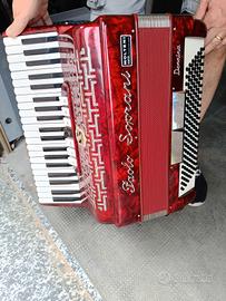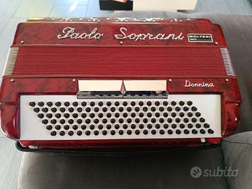 Fisarmonica Paolo Soprani 120 bassi modello donnina di colore rosso, ottime condizioni estetiche, perfettamente funzionante, sempre tenuta nella sua custodia originale.