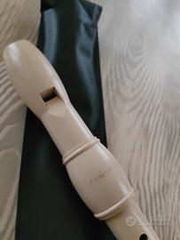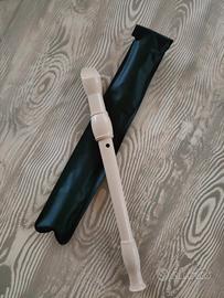 Flauto dolce soprano di plastica color crema. Marca: Abéura.
