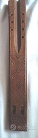 Flauto doppio in legno finemente intagliato; lunghezza cm 31 circa