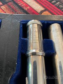 flauto traverso muramatsu originale del 1978, compreso anche della sua custodia. modello EX con corpo in maillechort argentato e una testata in argento massiccio. revisionato tre anni fa