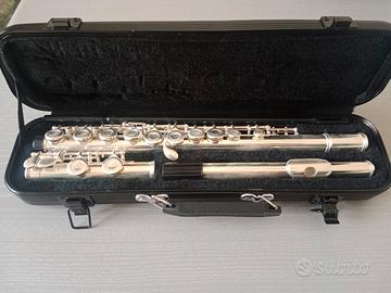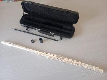 vendo flauto traverso Arrow Deluxe, mai usato, per principianti, da studio, completo di tappi di protezione, asta per pulizia interna e custodia