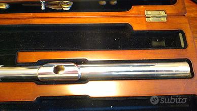 mod.DN (senza viti di regolazione, migliore stabilita della meccanica,)argento 925 meccanica corpo i due trombini e testata, corrispondenza con odierno DS, caminetti estratti, corpo pesante (heavy), mi snodato, sol fuori linea, con rulli sulle chiavi del do# re#, fori chiusi con doppio trombino (in do e in si) completamente revisionato (pulizia tubo e meccanica e cambio cuscinetti "pisoni") da Luigi Schiavone in giugno 2025, la custodia non è in vendita,