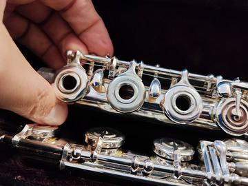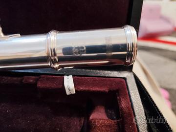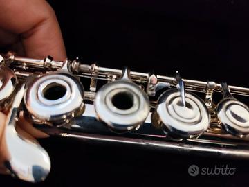 Flauto Yamaha con testata in argento meccanica aperta in linea e discendente al si. completo di custodia, copri custodia e scatola originale.