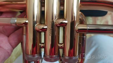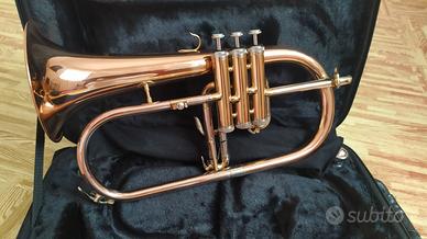 Flicorno Soprano in sib Comet Phosphor Copper appena revisionato - sostituzione guide e feltro - ottime condizioni. Laccato oro, canneggio principale ramato mm 11.0 Campana ramata mm. 151.8 Congegno trigger 3a pompa, 3 chiavi acqua. Bocchino compreso 3c, Borsa antiurto con tracolla. Astenersi affaristi e perditempo.