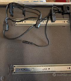 Vendo fantastico case come nuovo per 2 lettori grandi piu mixer 4 canali tutto cablato come da foto per alimentare i lettori e il mixer in piu attacco per alimentare un macbook dotato anche di slitta estraibile per poggiare un terzo lettore come in foto oppure il pc o effettiera il case conteneva 2 cdj 2000 nsx 2 e un djm 900 nsx con dei separatori in spugna amovibili quindi essendo aperto si puo adattare a molteplici prodotti le