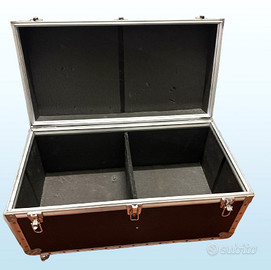 Flight Case 800 X 400 X 425mm. Comodo, solido e resistente. Costruito con multistrato da 9 mm e rivestito in laminato antigraffio. Rivestimento interno con feltro. Dotato di angolari in metallo, due maniglie a incasso per il trasporto e tre chiusure a farfalla.