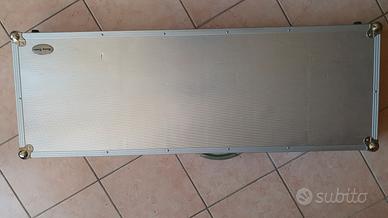 Case molto robusto con rivestimento in alluminio e serrature a farfalla granitiche.L'interno è imbottito e sagomato,con due capienti cassetti porta corde e accessori.Le misure interne sono: 118x34 cm e quelle esterne: 127x44x15 cm. Preferirei la consegna a mano,ma posso anche spedire se la spedizione è a carico dell'acquirente