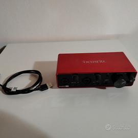 come da titolo, scheda usata, presenti graffi e difetti estetici, usata in casa e fuori. I POTENZIOMETRI DEI MONITOR E DELLE CUFFIE FRUSCIANO, È POSSIBILE UNA PERDITA MOMENTANEA DI UNO DEI DUE CANALI AL MOVIMENTO DI ESSI, VANNO PULITI CON SPRAY PER CONTATTI ELETTRICI APPOSITO. Non ho modo e tempo di svolgere da me tale manutenzione e pertanto vendo la scheda per passaggio a nuovo modello a prezzo ragionevole. presente cavo originale, assente scatola originale. gli input sono perfettamente funzionanti, la scheda collegata al pc funziona perfettamente, richiede solo la manutenzione sopra segnalata. NON SI ACCETTANO RECLAMI PER DIFETTI, ESSENDO QUI ELENCATI E DESCRITTI, CON ANNESSA SOLUZIONE AD ESSI. Pregasi, pertanto, no perditempo. La scheda può essere UTILIZZATA LO STESSO, collegata al pc non da problemi di driver (SCARICABILI DAL SITO DELLA CASA MADRE N.B.) basta "giocare" un po' coi due pot in caso di noie.