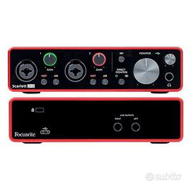 La terza generazione Scarlett 2i2, la più famosa interfaccia audio per artisti di tutte le estrazioni, offre due ingressi mic/line/instrument per registrare e riprodurre simultaneamente fino a due canali con controlli indipendenti per uscite cuffie e monitor. L'interfaccia 2i2 possiede due preamplificatori microfonici Scarlett ulteriormente migliorati, grazie al modo AIR, che, una volta attivato, introduce una particolare curva di equalizzazione. Si tratta di un incremento sulle frequenze medio alte, con una contestuale saturazione piacevolmente apprezzabile su voci e sorgenti acustiche in genere. Il modo AIR emula l'omonima funzione che ha reso famosi i preamplificatori ISA. Scarlett garantisce la stessa qualità professionale del suono in tutta la gamma di terza generazione, grazie ai convertitori AD-DA a 24bit/192kHz ad alte prestazioni. Gli ingressi Instrument ad alta impedenza consentono di registrare la chitarra o il basso senza tagli o distorsioni indesiderate, mentre il particolare meter Gain Halo, un LED che circonda tutto il perimetro del potenziometro GAIN variando la propria illuminazione in base all’intensità del segnale, semplificherà l'impostazione del livello di ingresso per evitare spiacevoli distorsioni e clip. Le uscite bilanciate sono prive di ronzio quando si collegano monitor da studio con ingressi bilanciati, per avere sempre la riproduzione audio della massima qualità. Rispetto ai modelli della precedente serie, le Scarlett di terza generazione si distinguono non solo per una dinamica migliore, ma anche per il livello di uscita potenziato di ben 6dB quando l'interfaccia è alimentata via USB; una caratteristica importante per consentirti di gestire al meglio il Gain Staging della tua produzione senza particolari ripercussioni sul livello d’ascolto.