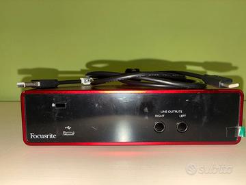 Focusrite Scarlett 2i2 Studio (3rd Generation), tenuto in condizioni perfette, pari al nuovo. È la soluzione ideale per chi vuole iniziare a registrare musica, podcast o voce fuori campo con una qualità professionale. Il pacchetto è completo di scatola originale e di tutti i componenti inclusi all'acquisto. In più, aggiungo degli accessori utili per completare il tuo setup subito. Cosa include il pacchetto: - Interfaccia audio: Focusrite Scarlett 2i2 (3rd Gen) – con modalità "Air" per un suono brillante. - Microfono: Condensatore a diaframma largo CM25 MkIII. - Cuffie: Monitor chiuse HP60 MkIII. - Cavi: Cavo XLR originale da 3 metri e cavo USB. Bonus Extra: - 2 Pop filter (fondamentali per registrazioni vocali pulite). - Stand microfono (asta robusta). - Stand da scrivania per telefono (comodo per seguire tutorial o leggere testi durante la registrazione).