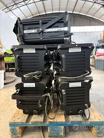 Vendo 10 proiettori fresnel 2000w in blocco completi di bandoor e porta gel. Il materiale è in ottime condizioni Tensione dell'apparecchio di alimentazione a seconda della tensione del tipo di lampada selezionata (230/110Vac 50/60Hz), 2000W, per lampada 2000W, presa GY16, zoom manuale 8°÷51*, raffreddamento a convezione naturale, alloggiamento in alluminio estruso e corpo in piastra in acciaio, vernice in polvere epossidica nera resistente ai graffi. Il proiettore può funzionare inclinato di +60°/-45°. Barndoor 4 foglie Opzionale. Peso del PC 10,2 kg. Peso Fresnel 9,2 Kg