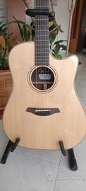 La chitarra è una Drednought spalla mancante, Corpo in Abete Stika massello AA grade e fondo e fasce in Palissandro Indiano massello AA grade. Manico in Mogano Africano e Tastiera in Ebano con inlay in madreperla. Spaziatura Nut 45mm.
