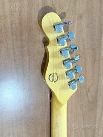 Vendo G&L Asat Classic Tribute Butterscotch Condizioni Perfette ASAT Classic Butterscotch Blonde – Chitarra elettrica 6 corde – Tribute Series – Struttura: Bolt-on – Corpo: Swamp ash – Manico: Acero Verniciato Satinato con Profilo Medium C – Tastiera: Acero – Scala: 25,5” (648mm) – 22 tasti Medium-Jumbo in Nickel – Radius: 9½” – Battipenna: Nero Singolo Strato – Capotasto: 41,2mm – Intarsi: Dot Neri – Pickups: 2x Leo Fender Designed G&L MFD Single Coil made in USA – Controlli: 1x Volume + 1x Tono + Selettore a 3 posizioni – Ponte: Tradizionale a Posacenere in acciao, con sellette indipendenti in ottone – Meccaniche: Sealed-Back 18:1 ratio – Finitura hardware: Cromato – Colore: Butterscotch Blonde – Finitura: Lucida.