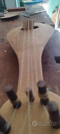 Cedo Gadulka bulgara, corpo in acero taglio liuteria e piano armonico in abete. Lo strumento, restaurato in ogni sua parte e perfettamente funzionante, monta piroli in noce conformi all'originale e il ponticello, atto a supportare tre corde simpatetiche, è in acero mentre le tre corde melodiche sono in budello. L'anima, copia dell'originale, è in acero. Lo strumento è privo di arco.