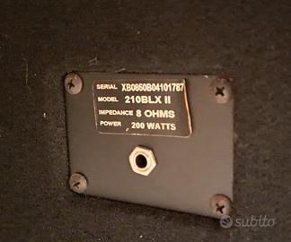 cassa per basso elettrico in perfette condizioni. Potenza: 200W .Impedenza: 8 ohm. Due coni da 10 pollici.