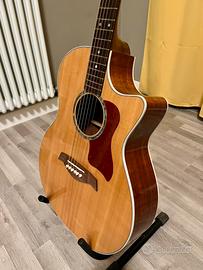 Vendo chitarra acustica completamente costruita a mano dal liutaio Alberto Gallinaro nel 2013 Condizioni perfette a parte minimi segni d’uso NO SCAMBI O PERMUTE Body Size Grand Auditorium - 14 fret Tavola Armonica Abete Sitka Fondo Bubinga Fasce Bubinga Manico Mogano Rosetta Green Paua Abalone Tastiera Palissandro 15” Radius Scala 25,5” (647.7 mm) Intarsio Paletta "G" logo Tasti n°20 (Medium size) Capotasto Osso - 44.45 mm Largh. Meccaniche Grover Ponte Palissandro (gallinaro Design) Piroli Osso con dot in abalone Battipenna Tartaruga Colore Naturale