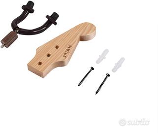 Vendo questo gancio in colore legno naturale, nuovo, per appendere qualunque chitarra o basso o mandolino al muro. Includo 2 viti per cartongesso.