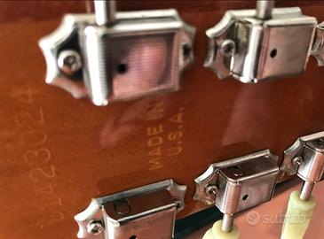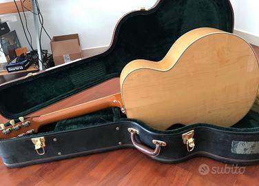 Vendo splendida Gibson J 185 natural anno 2003. Di seguito le specifiche tecniche Modello:** Gibson J185 Original - **Anno di produzione:** 2003 - **Luogo di costruzione:** Gibson Acoustic Shop, Bozeman, Montana, USA - **Finitura:** Natural / Antique Natural (nitrocellulose) --- ## Corpo - **Forma del corpo:** Jumbo (J185) - **Top (tavola):** Abete Sitka massello - **Fondo e fasce:** Acero fiammato massello (flamed maple) - **Rinforzo interno (bracing):** Xbracing tradizionale, scalloped (lavorazione a mano) - **Binding (bordo):** Multistrato su top e fondo - **Finitura corpo:** Nitrocellulose gloss (lucida) --- ## Manico & Tastiera - **Legno del manico:** Mogano - **Profilo del manico:** Slim Taper (profilo relativamente sottile) - **Scala (scale length):** 24.75 ( 628.65 mm) - **Tastiera:** Palissandro (rosewood) - **Raggio tastiera:** 12 ( 304.8 mm) - **Numero di tasti:** 20 - **Larghezza al capotasto (nut width):** 1.72 ( 43.8 mm) - **Materiale del capotasto:** Osso (bone) - **Intarsi tastiera:** Parallelogrammi in madreperla --- ## Ponte, hardware & meccanica - **Ponte (bridge):** Traditional BellyUp (ponte convesso) - **Sella (saddle):** Osso - **Perni ponte (bridge pins):** Tusq - **Meccaniche (tuners):** Gotoh Keystone (nichelate) - **Battipenna (pickguard):** Stile tradizionale J185 - **Coperchio trussrod:** Bianco & nero --- ## Elettronica - **Pickup sottosella:** LR Baggs VTC (undersaddle) — presente su molti esemplari con preamp integrato - **Controlli:** Volume e Tono (quando presente il preamp) --- ## Misure aggiuntive / Peso - **Scala:** 24.75 ( 628.65 mm) - **Peso approssimativo:** ~2.3 kg ( 5.06 lbs)